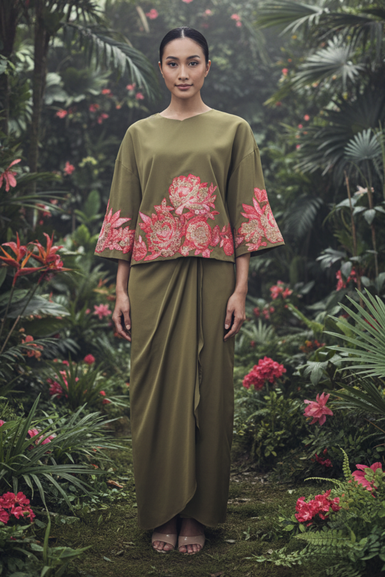 “This set is elevated with delicate embroidery detailing that enhances the silhouette and overall elegance. Rendered in subtle, soft hues, it offers a graceful and sophisticated Raya Lux 26 statement.”